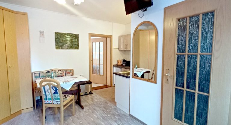 Die Wohnung ist komfortabel ausgestattet mit einem Bad mit Dusche und WC sowie einer praktischen Kochecke inklusive Kühlschrank und Mikrowelle. Für Unterhaltung und Entspannung sorgen ein internetfähiger Fernseher und kostenloses WLAN.